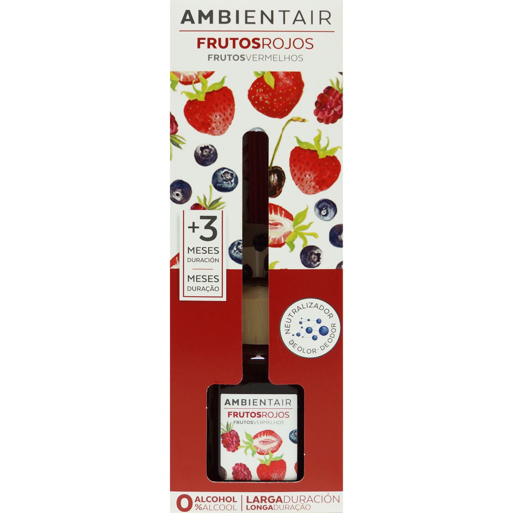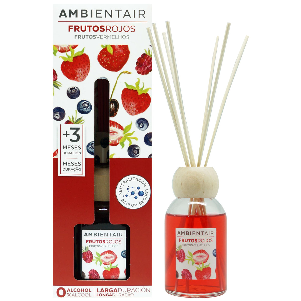 · Difusor 100ml · Esencia frutos rojos · Botella de vidrio con palillos de bamboo
