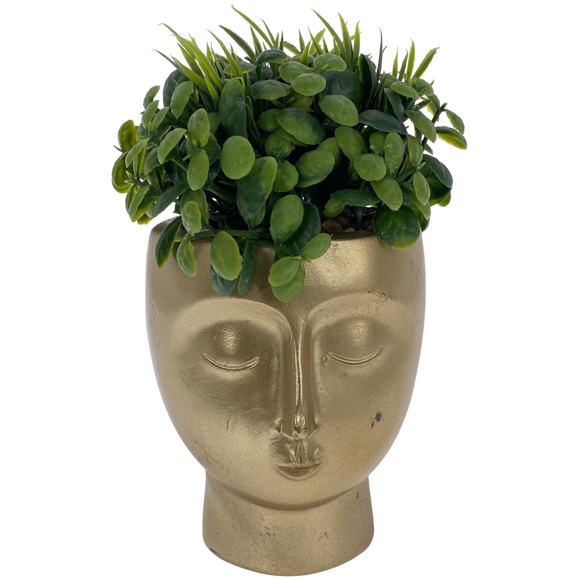 · El tono dorado del pote le da un toque sofisticado y moderno, lo que lo convierte en un elemento decorativo llamativo.