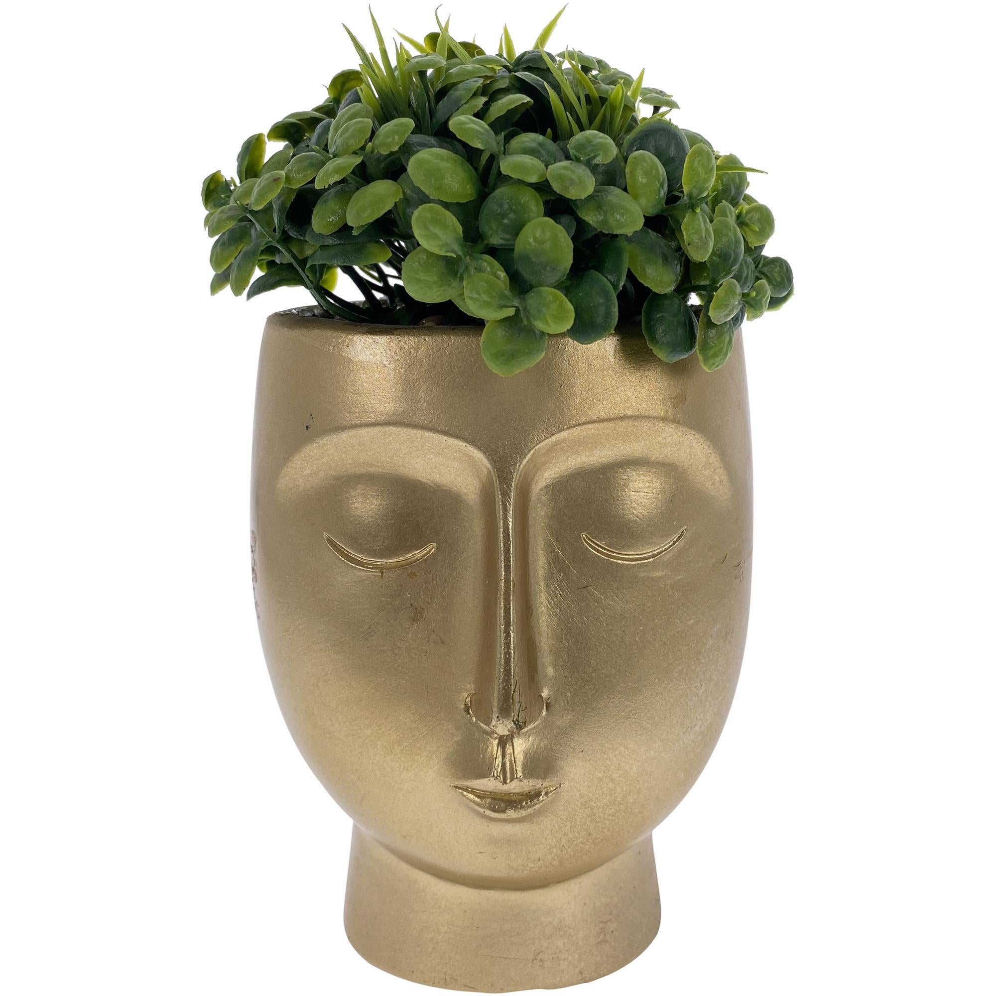 · El tono dorado del pote le da un toque sofisticado y moderno, lo que lo convierte en un elemento decorativo llamativo.