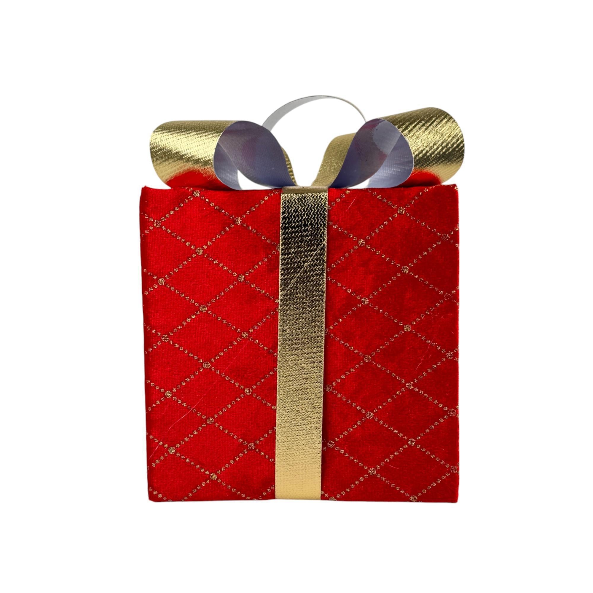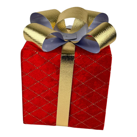 Encantadora caja decorativa con detalles vibrantes, ideal para resaltar la alegría de la temporada festiva.