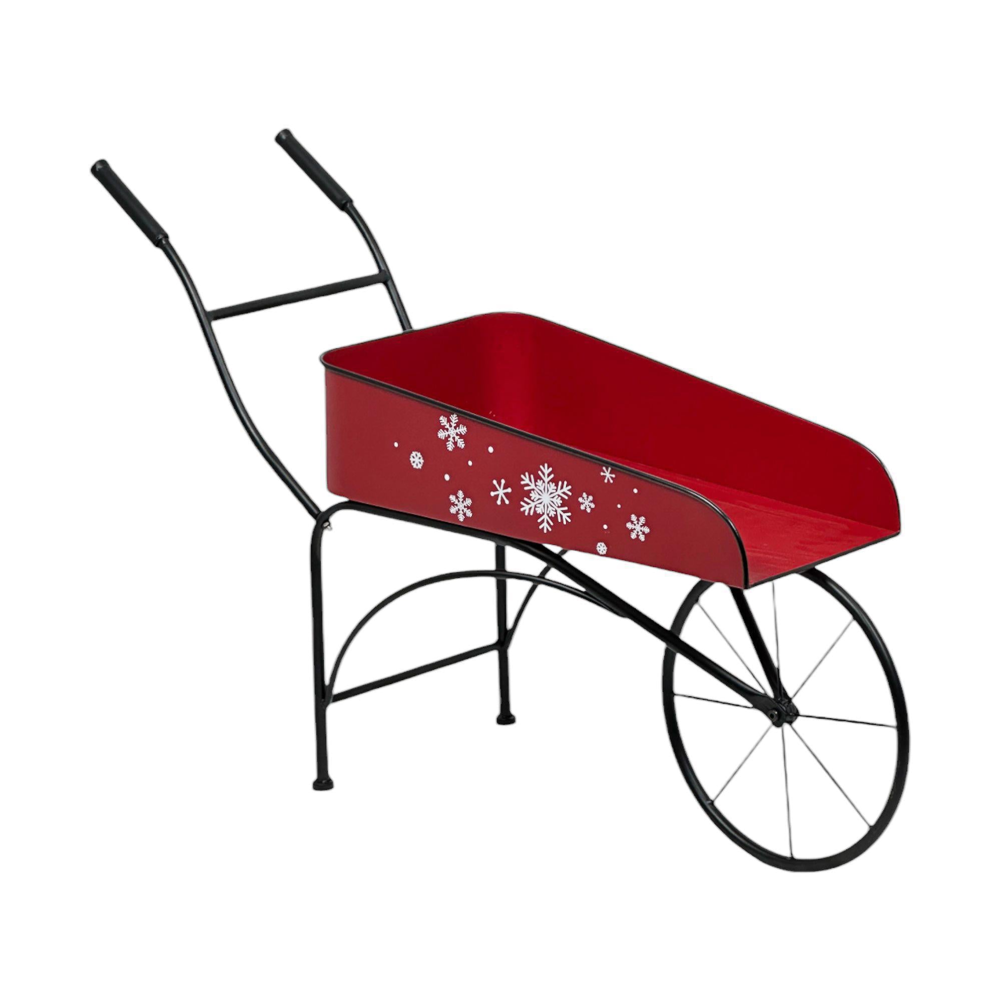 Carretilla decorativa con un diseño tradicional, perfecta para complementar la decoración con estilo.