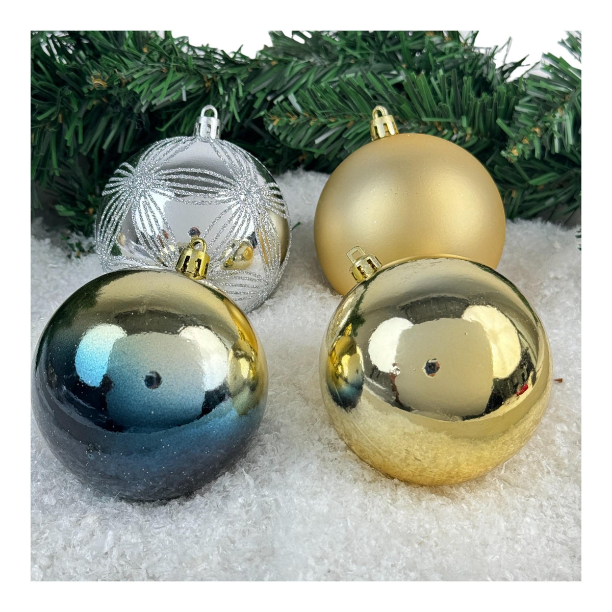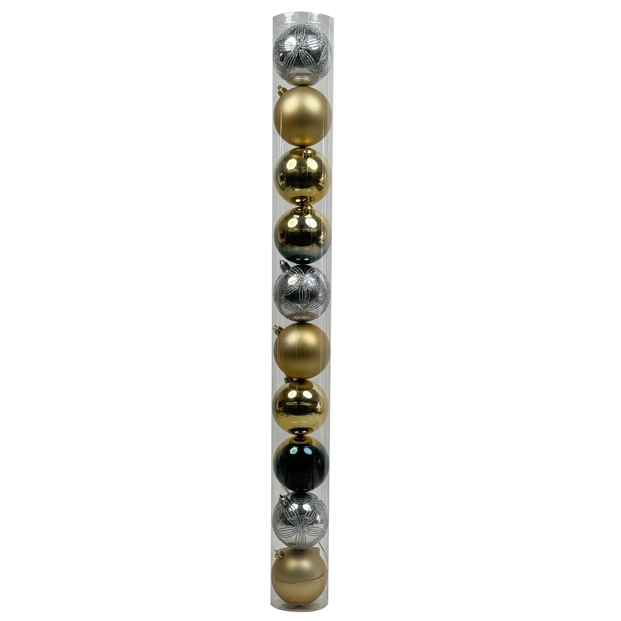 Bello juego de bolas en colores vibrantes, diseñadas para iluminar con su encanto la decoración navideña.