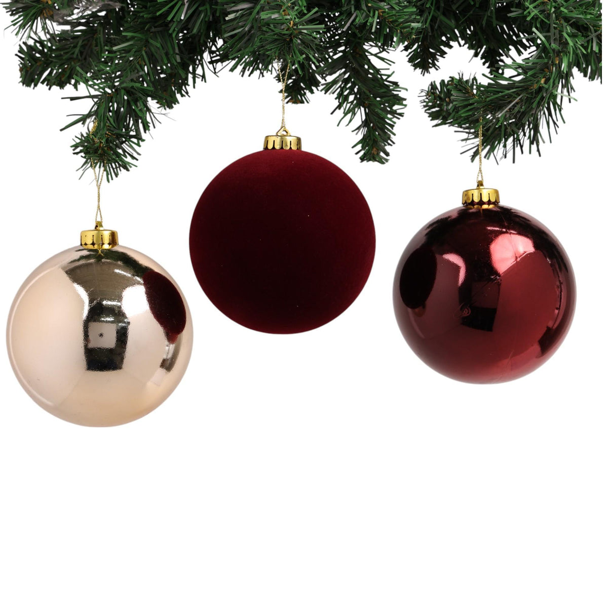 Conjunto de bolas decorativas en tonos festivos, ideal para armonizar la decoración con un toque elegante.