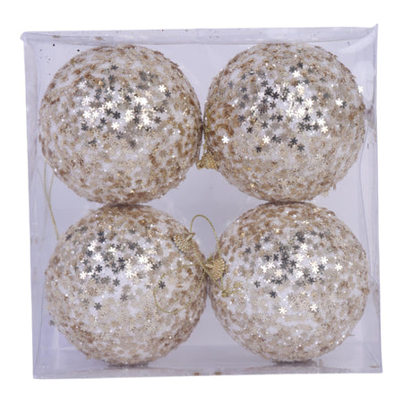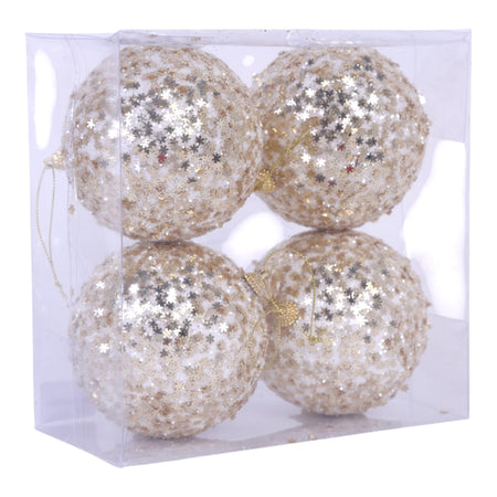 Juego de bolas decorativas con acabados brillantes y colores armoniosos, perfectas para embellecer cualquier espacio.