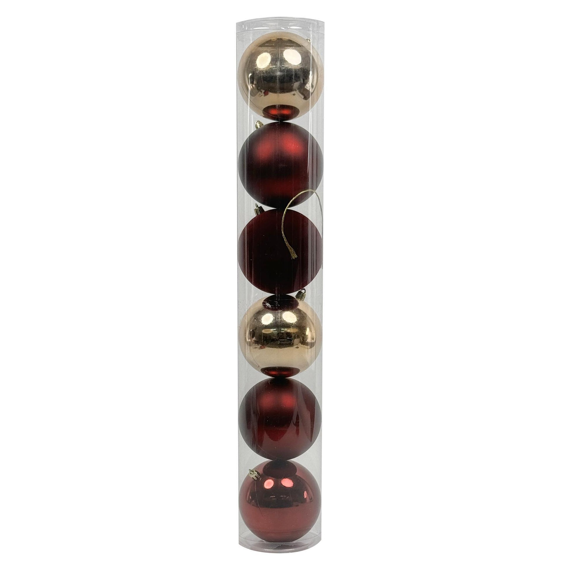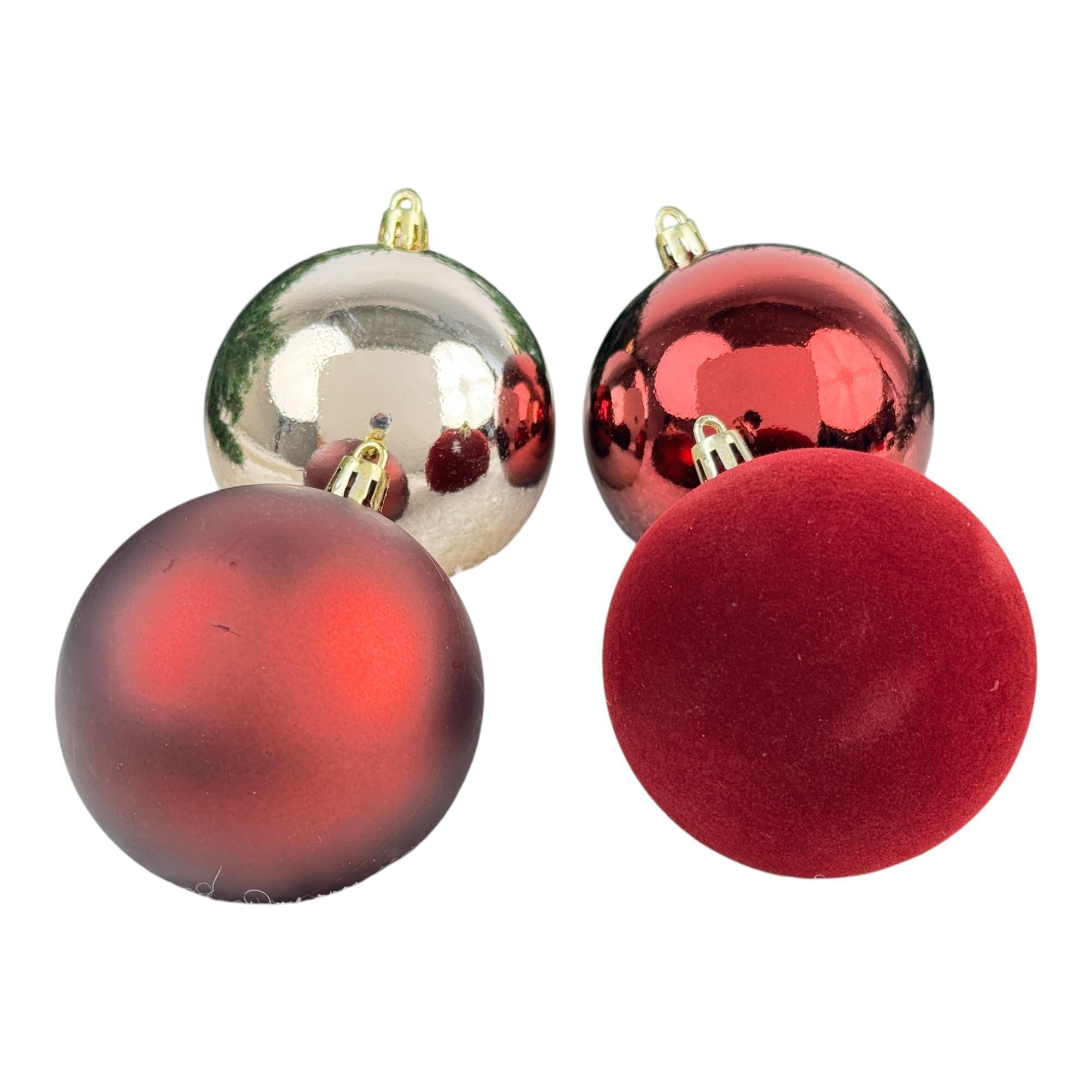 Juego de bolas decorativas con acabados brillantes y sofisticados, perfectas para dar un toque especial al árbol.
