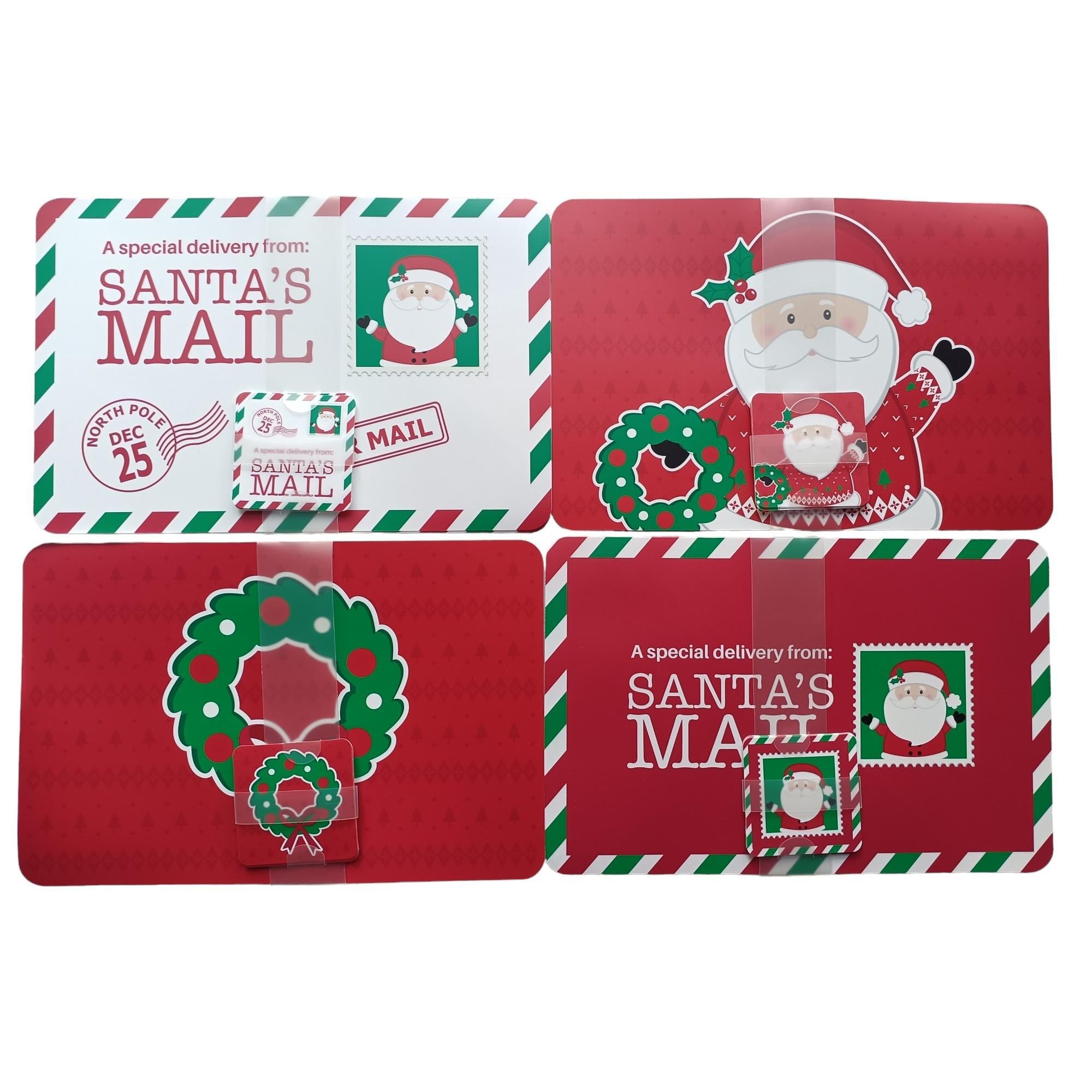 Juego de individuales y portavasos con detalles decorativos, perfecto para realzar la mesa navideña.
